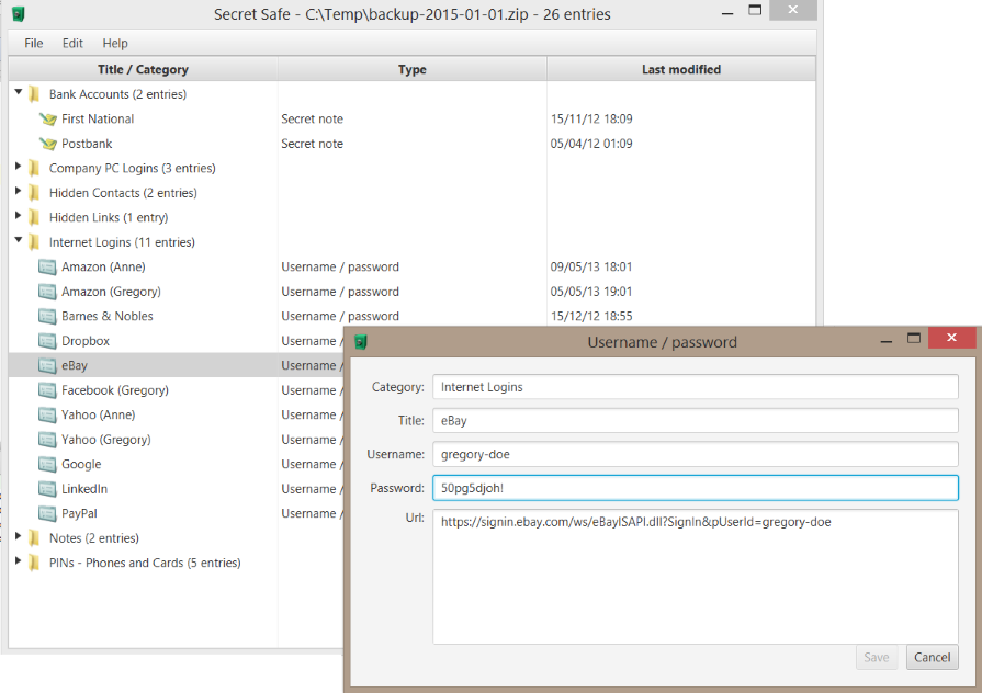 - The program can open, edit and save backup files from both SecretSafe and SecretSafe Lite